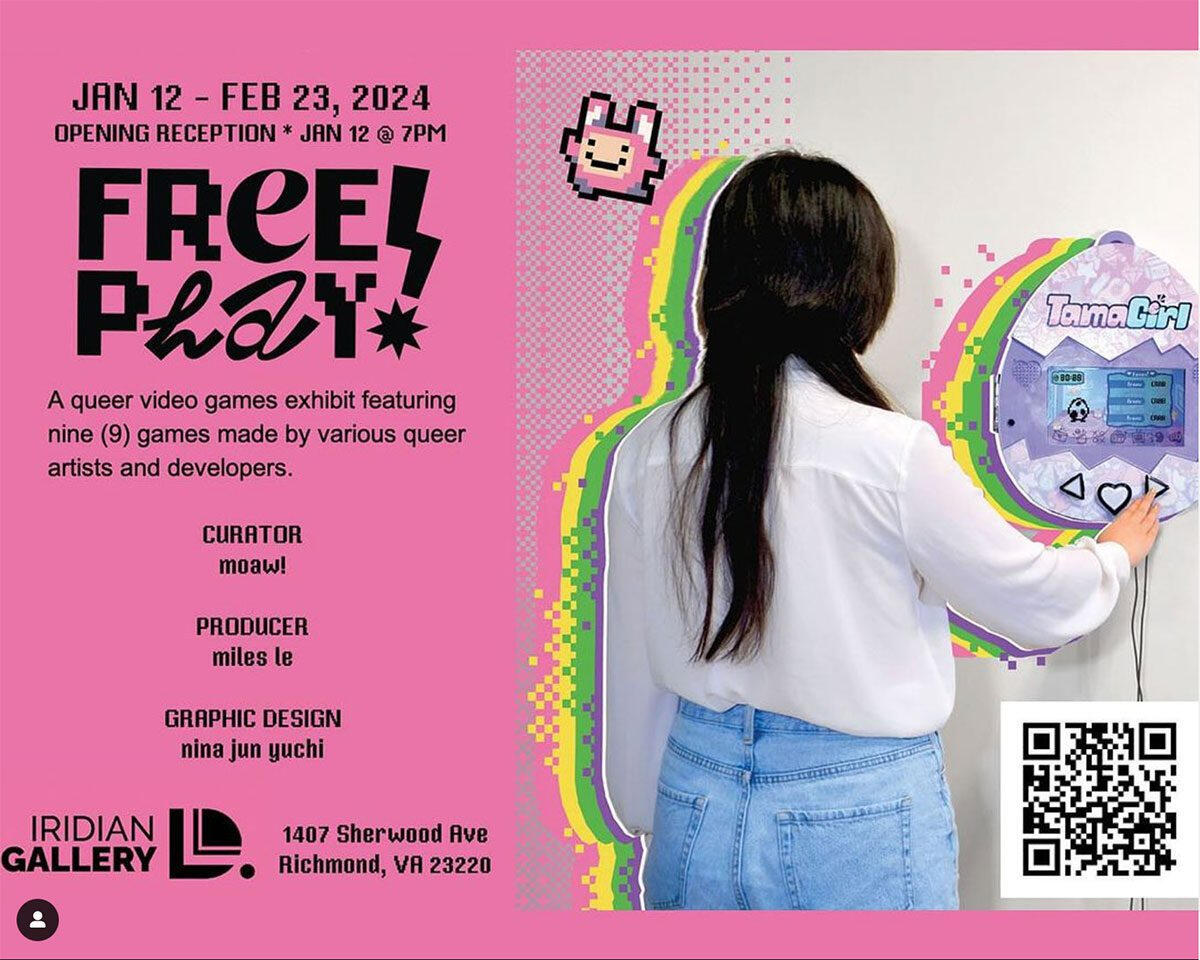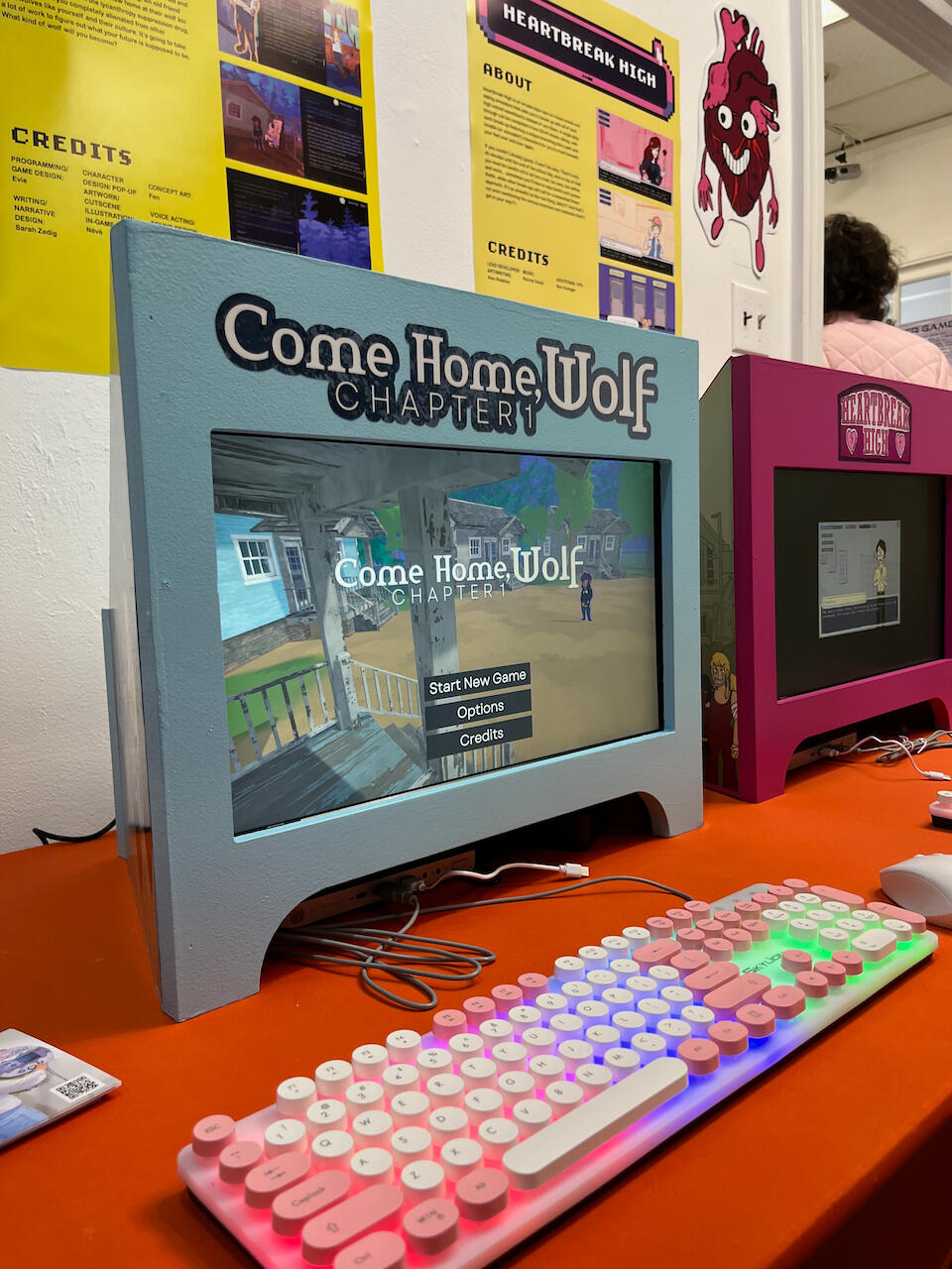 FreePlay! 2024 was Richmond, VA's first queer video games exhibit at the Iridian Gallery that ran from January 12th to February 23rd of 2024. Come Home, Wolf was one of nine projects to be a part of the show.The rest of the team and I are thrilled we got to be a part of this and it was a joyful time to see so many people playing our small project.