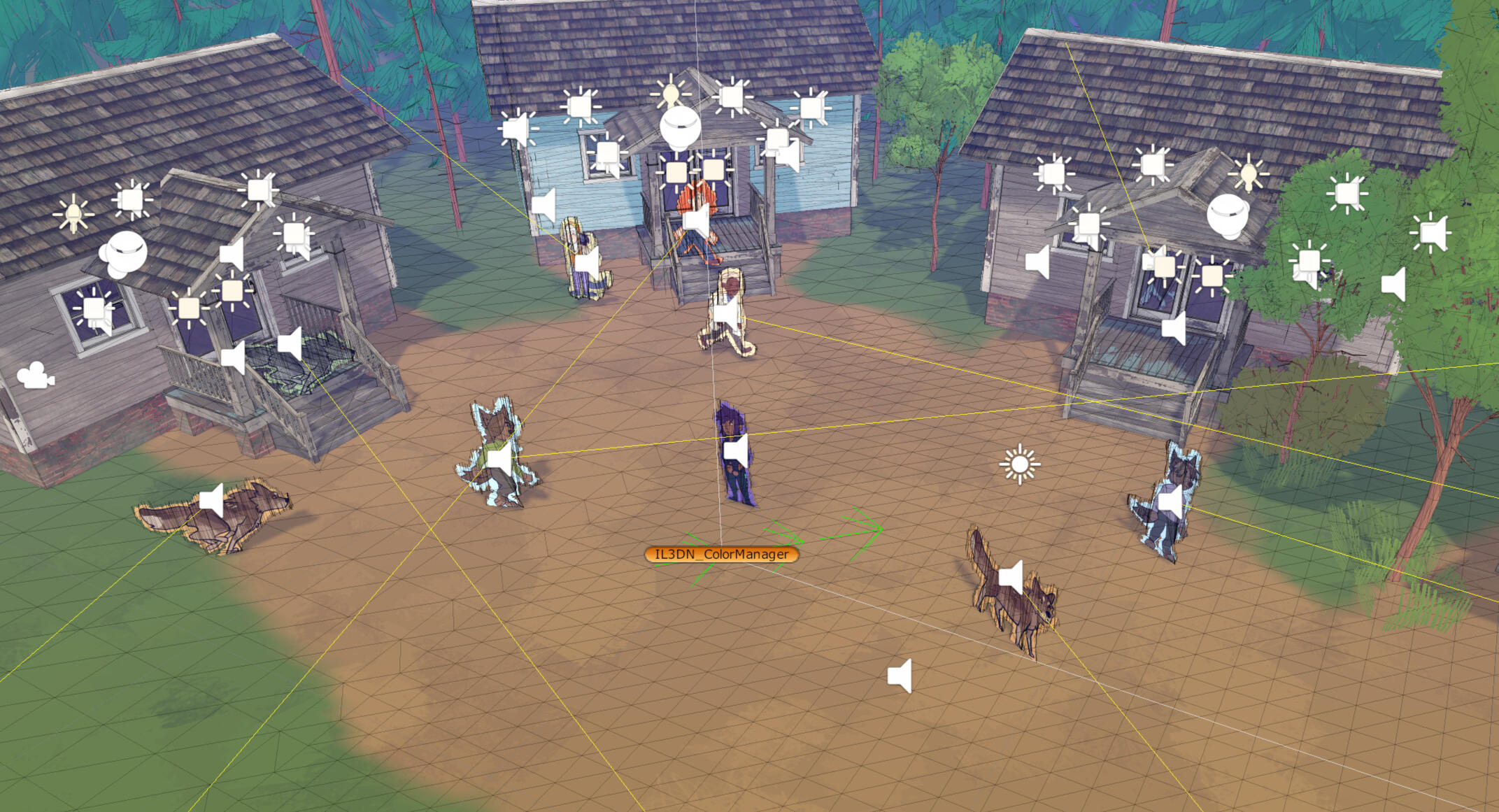 A navigation point exists for each core character as well as the player and camera for framing dialogue.